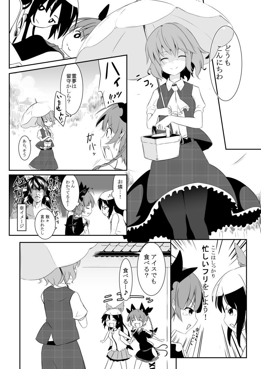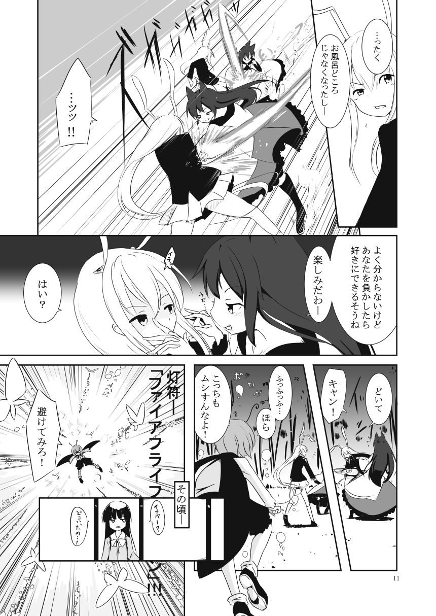 × [PR]上記の広告は3ヶ月以上新規記事投稿のないブログに表示されています。新しい記事を書く事で広告が消えます。 第11回紅楼夢の『か-18b』にてサークル参加します。新刊はオフセット、リグルメインでチルノ軍団に草の根ネットのお話を描きましたー。 少女救済 リグルが自身が妖怪であるが故に葛藤するようなないような内容です。今回サンプルをピクシヴさんに投稿しました。→コチラ 既刊ですが、 手持ちが例大祭の霊夢さんしかなかったのでそれをもって行きますです。 少女撃墜…第12回博麗神社例大祭 新刊・既刊も一律500円で頒布します。 それと、 スケブも明日制限しておきます。 5枚まで受け付けますので当日スペース+ここで告知しておきます。 以上の二点で明日臨みます。スペースのわりに相応せぬ感じですがなんとか明日、臨みます。 どうぞよろしこー。 PR 新刊告知と新コピー本告知 まず、上の表紙から、 少女撃墜 今月10日(日)に東京ビッグサイトで開催する第12回博麗神社例大祭にてサークル参加&半年ぶりの新刊を出します。 この私もついに、ついに東方オンリー最大規模の祭典へと足を踏み入れます。感極まるっす。 中身は格闘アクション?いえ、弾幕決闘漫画です。霊夢とナズーリンが”それなり”のお酒を求め探しに出かける内容です。 見本はこちら二枚 全24ページ(前回より4p多い)です。ふんすっすです。 もうひとつ、 名華祭にてサークル『なめこの星屋さん』の星屋マグロさんと一緒に手掛けた4コマコピー本も持って行きます。コーヒーを片手にブレイクしていく方にオススメ。飲食禁止です。 星屑マリオネット…東方名華祭9 以上の二点です。 また、 既刊に関してですが、 紅楼夢のうどんげ本のみが手元にあるのでこれ持って行きます。うどんげくん新作自機おめでとう。 兎RiSing and, U sTep now…第10回東方紅楼夢 頒布価格はオフセット新・既刊とも500円。コピー本は200円の予定です。 それでは、当日会場で会いましょう…! coming soon...! 新刊告知 兎RiSing 2 and, U sTep now 今月12日、インテックス大阪で開催する東方紅楼夢よりスペースさ-25aにて出します。来場する皆様、ぜひお立ち読みいただければ。 今回は毎度のコピー本ではなく印刷会社様を通し綺麗に製本しました。 今回の内容はこんな感じになります。さり気無く影狼姉さんも出演しちゃってます。ケモゐ 既刊もアングラのと幻サミのを出します。オフセよりもニッチなコピ本が好き…!という方はコチラ。 燐として夏空…アンダーグラウンドカーニバルより 風吹けば梅の花咲ク故、…幻想郷サミット2、名華祭8より さらに小品みたいなのもちょっと余裕あれば…。今回は売り子さんがついてくださるのでいつもよりリラックスして臨めそうです。ありがとうっっ!! それでは、一週間後に大阪の地で出会いましょう。 coming soon... *** 追記 頒布価格について更新。 新刊…500円 既コピー本…各200円 尚、新刊の委託はありませんので当日、今後の参加イベントで頒布します。 新コピー本! 凛として夏空。 アンダーグラウンドカーニバルにて出しますよ旦那! …
